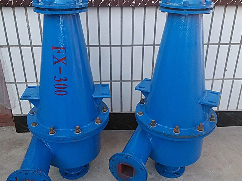 选煤重介质旋流器是由一台圆筒型旋流器与一台筒锥结合型旋流器串联而成。筒型旋流器呈10°-30°倾斜放置,在上部与筒锥型旋流器相串联。分选是从低密度进行,低密度的煤由段筒型旋流器的下部溢流管排出,中间产品由上部排出,沿切线方向进入第二段筒锥型旋流器,在该处获得 终中煤和矸石。从选煤重介质旋流器的段不仅可以得到质量高的精煤和稀的重介质,从而可有效地提高第二段的分选密度。